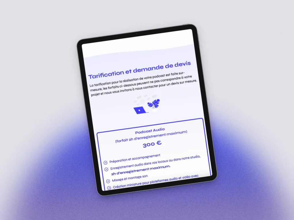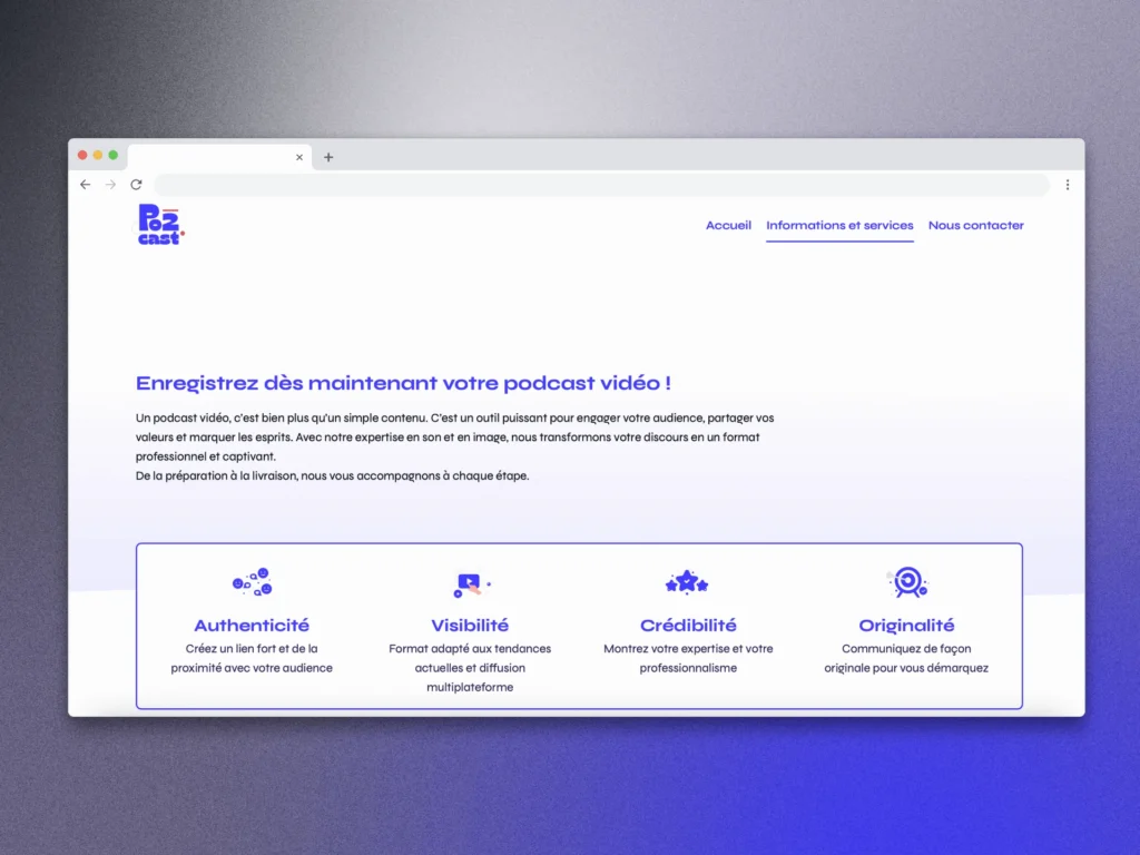 Création d’un site web pour présenter et promouvoir un service d’enregistrement de podcasts vidéos.